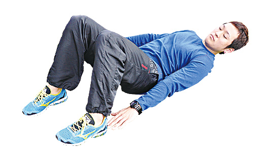 | 仰向けで横になり、交互にかかとを触り、横腹部の筋肉をきたえるエクササイズです。 | |