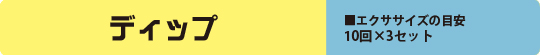 | 体育座りをした状態で、プッシュアップバーを身体の少し後ろに置き、両手で肘を 伸ばしたままバーを握ります。そして、身体を持ち上げた状態から肘を少しずつ曲げ、お尻が地面に着く前に肘を伸ばし、上下運動を行います。二の腕の上腕三頭筋のエクササイズとなります。 |