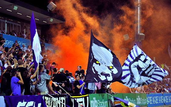 ふがいない戦いぶりに怒りを露にするグローリーのサポーター。